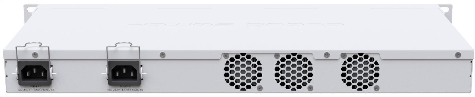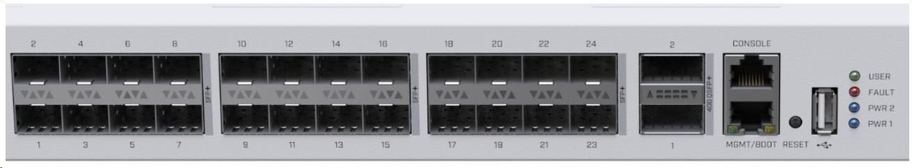 CRS326-24S+2Q+RM se snadno spravuje - má USB port plné velikosti pro konfiguraci a duální napájení pro redundanci.