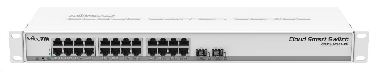 MikroTik Cloud Smart Switch CSS326-24G-2S+RM, 24 non-blocking gigabit.portů, 2xSFP+, Marvell DX switch chip, SwOS