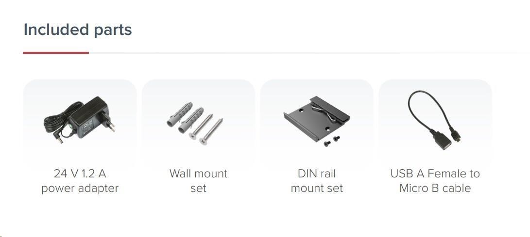 • Široká škála napájení: DC konektor, PoE, Micro USB