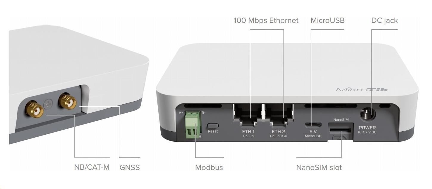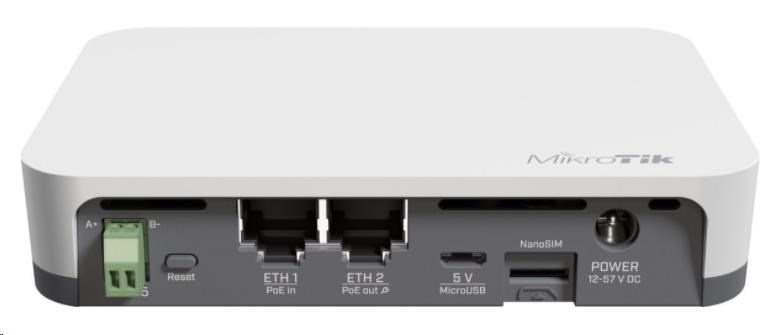 MikroTik RB924i-2nD-BT5&BG77, IoT Gateway, 650MHz CPU, 64MB, 2,4GHz, 2x2MIMO, 2x10/100Mbps, 1xSIM, 802.11n/b/g