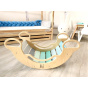 Dětská dřevěná Montessori houpačka smile 6in1, v příjemných pastelových barvách v modro-zelných tónech v kombinaci s neutrální šedou, vás překvapí svým designem i multifunkčností. Houpačka bude každý den svým širokým úsměvem lákat děti k příjemnému pohoupání i k zábavné hře. Její využití je všestranné, může být houpačkou, skluzavkou, prolézačkou, skrýší i sedačkou, při doplnění oboustranným prknem i dětským nábytkem. Oboustranné prkno není součástí houpačky. Vyrobená je z těch nejkvalitnějších materiálů, ručně dohladka opracovaná a lakovaná barvami s atestem. Montessori houpačka smile je širší než naše Montessori houpačky 5in1, proto k této houpačce nabízíme i speciální oboustranné prkno, které je doplňkem k houpačkám smile. Díky prknu snadno proměníte houpačku smile v dětský stoleček. Oboustranné prkno není součástí houpačky, pro využití houpačky jako nábytku je nutné prkno samostatně dokoupit..