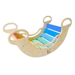 Dřevěná dětská Montessori houpačka smile 6in1 vás překvapí svým designem i multifunkčností. Houpačka bude každý den svým širokým úsměvem lákat děti k příjemnému pohoupání i k zábavné hře. Její využití je všestranné, může být houpačkou, skluzavkou, prolézačkou, skrýší i sedačkou, při doplnění oboustranným prknem i dětským nábytkem. Oboustranné prkno není součástí houpačky. Díky svěžím fresh barvám rozzáří každý dětský interiér. Vyrobená je z těch nejkvalitnějších materiálů, ručně dohladka opracovaná a lakovaná barvami s atestem. Montessori houpačka smile je širší než naše Montessori houpačky 5in1, proto k této houpačce nabízíme i speciální oboustranné prkno, které je doplňkem k houpačkám smile. Díky prknu snadno proměníte houpačku smile v dětský stoleček. Oboustranné prkno není součástí houpačky, pro využití houpačky jako nábytku je nutné prkno samostatně dokoupit..