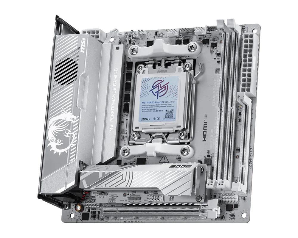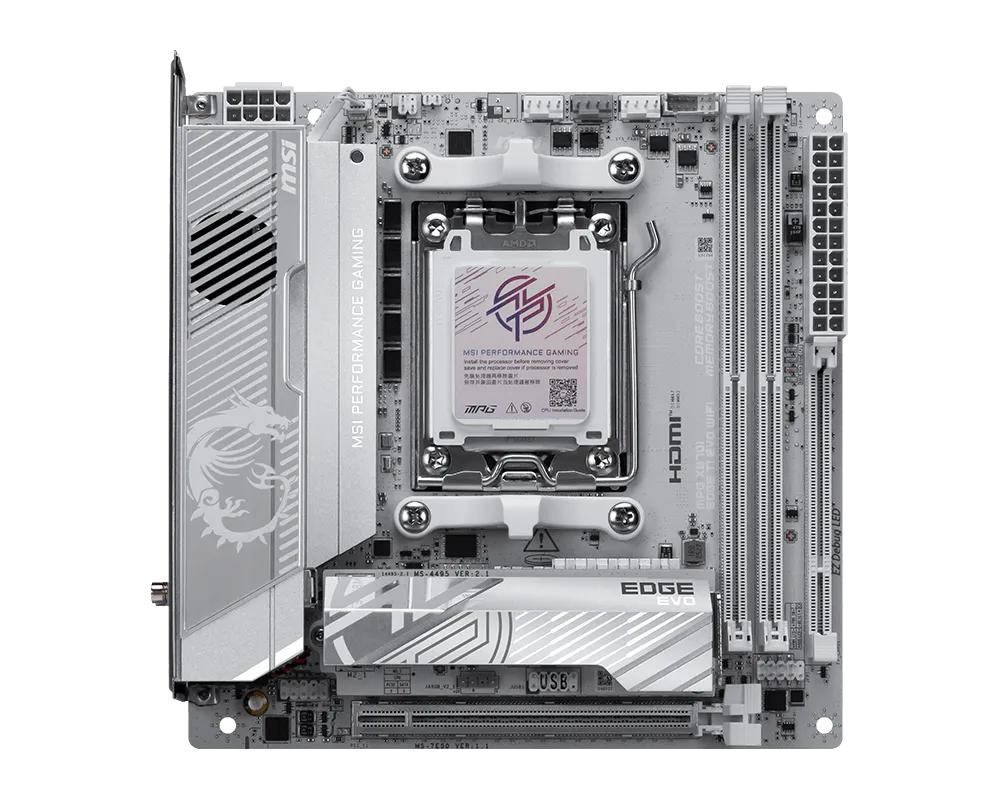 MPG X870I EDGE TI EVO WIFI is covered with a silver-white color scheme for white PC build lovers to show off different identity. It is also powerful because of its true Wi-Fi 7 solution, 5G LAN, USB4, and the latest PCIe 5.0 compatibility, and this is the best white theme X870 ITX motherboard for AMD Ryzen™ 9000 series processors.