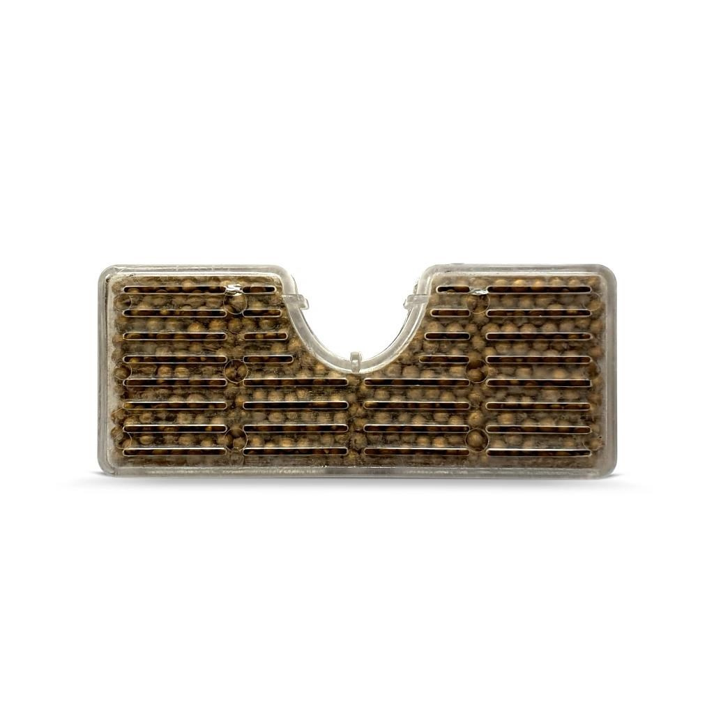 Hnědé kameny uvolňují antibakteriální prášek z nano stříbra. Kameny jsou vloženy do plastového pouzdra pro snadnou výměnu.