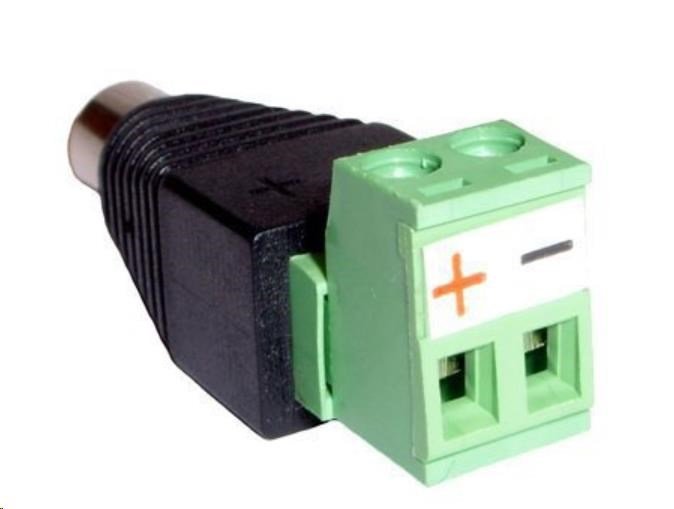 Napájecí konektor; se svorkovnicí pro zdroj; napájecí koncovka pro 12V; výstup ze zdroje na kab. rozvody; rozebíratelná svorkovnice
