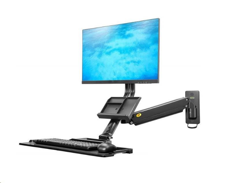 Kompletní specifikace Polohovatelná nástěnná pracovní stanice NB MB32 Profesionální držák na monitor 19" - 27" a klávesnici s myší, odkládací přihrádka, otáčení, náklon, výškové a délkové nastavení, VESA 75x75 a 100x100, nosnost 9kg, nejvyšší kvalita, systém vedení kabeláže, výškové polohování 480mm Profesionální držák na monitor a klávesnici, uchycení na svislou plochu (stěna, pilíř, sloup, stroje a zařízení). Polohování 3D - otáčení do stran, náklon monitoru, odsouvání a přisouvání ode zdi, výškové polohování (bez použití nářadí - dotykové), rotace monitoru (otočení na šířku nebo na výšku). Držák je vhodný pro zavěšení všech typů monitorů a All in One PC s úhlopříčkou 19" až 27" a hmotností 2-9kg. Police na klávesnici a myš s rozměry 560x200mm (možnost zaklopení) a přihrádka na dokumenty, vizitky, mobil a poznámky. Nejvyšší kvalita zpracování, snadná instalace a nastavitelnost. Systém skrytého vedení kabeláže. Barevné provedení černé. Držák na monitor nebo All in One Pc včetně poličky na klávesnici a myš, 3D polohování, profesionální, do kanceláře, výrobní haly, na stoje CNC a obráběcí, uchycení na svislou plochu nebo zeď - NB MB32 Technické údaje: nastavitelná nosnost dle hmotnosti monitoru 2kg až 9kg na monitory a All in One PC s úhlopříčkou 19" až 27" podpora VESA standardu 75x75 a 100x100 police na klávesnici a myš s rozměry 560mm x 200mm (možnost zaklopení, délková regulace 60mm) přihrádka na dokumenty, vizitky, poznánky, bločky, mobilní telefon otáčení do stran +/- 90° náklon obrazovky +12° / -12° výškové nastavení samotné obrazovky 100mm výškové polohování celého držáku 480mm rotace obrazovky PIVOT - natočení do vodorovné nebo svislé polohy vzdálenost od zdi 90mm až 1010mm plynová pružina pro výškové polohování bez použití nářadí (dotykové) systém pro vedení kabeláže materiál hliník, kryty plastové nejvyšší kvalita barevné provedení černé záruka 3 roky Držák All in One Pc nebo monitoru s poličkou na klávesnici a myš, uchycení na stěnu nebo svislou plochu, ideální do výroby, na stroje, CNC, obráběcí, do malých místností atd. - NB MB32 Držák na monitor NB MB32 podporuje VESA standardy: VESA 75x75 VESA 100x100 3D polohovatelný držák na monitor All in One Pc a klávesnici, uchycení na zeď nebo svislou plochu NB MB32 Nastavení výšky bez použití nářadí, snadno a rychle: Držák má integrovaný plynový píst, který po zavěšení monitoru otáčením imbusového klíče nastavíte na jeho hmotnost. Poté již bude držák zůstávat vždy v takové výšce, do které ho zatlačením na monitor nebo vytlačením dáte. Regulace výšky je možná v rozmezí 480mm. Ergonomická kancelář, držák monitoru a klávesnice s myší NB MB32 Kde lze držák monitoru nebo All in One PC s poličkou na klávesnici a myš použít: firmy, společnosti v kancelářích malé místnosti, práce bez stolu (možnost rychlého nastavení pro práci v sedě nebo vestoje) v dílnách v továrnách pozice na strojích (CNC, obráběcí atd.) ve skladech v domácnostech.