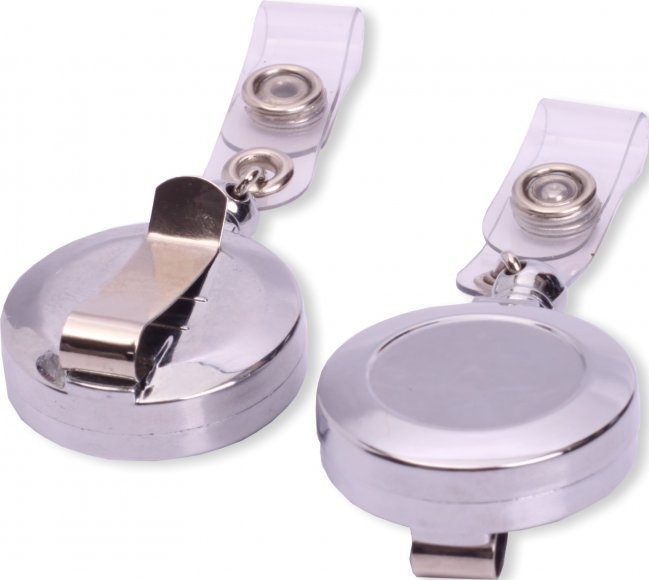 Plastový naviják s chromovaným povrchem, průměr 32 mm, délka lanka cca 65 cm..
