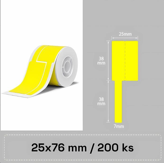 Balení obsahuje 1x roli žlutých samolepících štítků Niimbot na kabely o rozměru 25x76mm – 200ks.