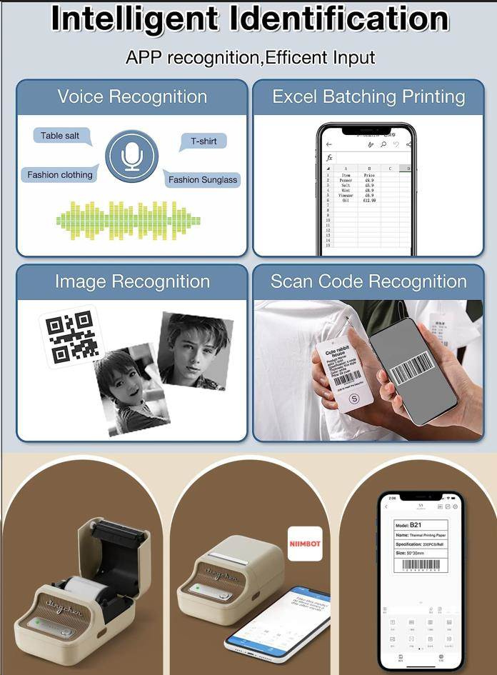 Zapomeňte na zdlouhavé a komplikované procesy tisku etiket. S NIIMBOT B21S je tisk etiket hračkou díky její bezdrátové technologii a vynikajícím funkcím. Tato přenosná tiskárna etiket je vybavena dobíjecí lithiovou baterií, která vám umožní tisknout kdekoli a kdykoli budete potřebovat po dobu 4 až 5 hodin. S NIIMBOT B21S můžete jednoduše označovat věci v kanceláři, škole, obchodě a na mnoho dalších místech. Její kompatibilita s PC a se systémy Android a iOS znamená, že můžete tisknout přímo ze svého smartphonu nebo tabletu, což zajišťuje maximální pohodlí a efektivitu.