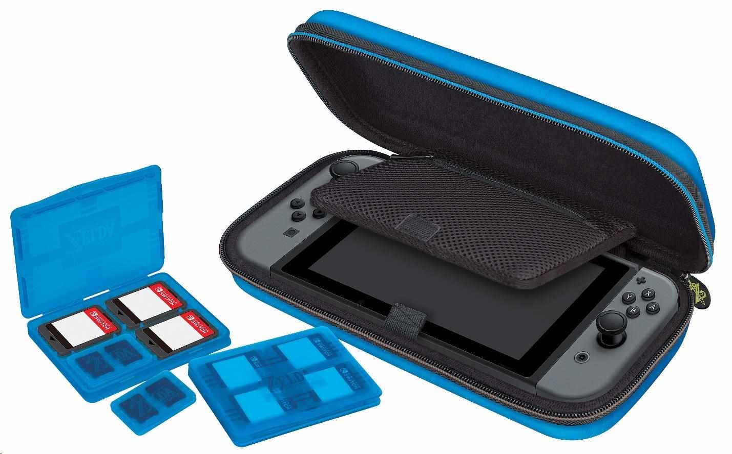 Luxusní cestovní pouzdro NNS42BR s motivem The Legend of Zelda: Breath of the Wild V tomto luxusním cestovním pouzdru s motivem akční dobrodružné hry The Legend of Zelda: Breath of the Wild můžete bezpečně a bez obav převážet svou oblíbenou herní konzoli Nintendo Switch. Nedílnou součástí tohoto pouzdra je polohovatelný stojánek, který vám při používání konzole umožňuje upravit pozici obrazovky podle potřeby. Když později uložíte konzoli zpět do pouzdra, ochrání stojánek její obrazovku před poškrábáním. Třešničkou na dortu pak je přívěsek na jezdci zipu v podobě zlaté mince se symbolem oka. Balení rovněž obsahuje dvě plastová pouzdra na herní karty, z nichž do každého se vejdou čtyři herní karty, a také dvě plastová pouzdra na microSD karty, přičemž do každého z těchto menších pouzder se vejdou dvě microSD karty a každé z těchto pouzder se vejde do libovolné pozice ve větším pouzdru na herní karty. SPECIFIKACE PRODUKTU: Výrobce: R.D.S. Industries Distributor: Bigben Interactive Distributor v ČR: HYPE Kategorie: příslušenství Platforma: Switch Lokalizace: v angličtině.
