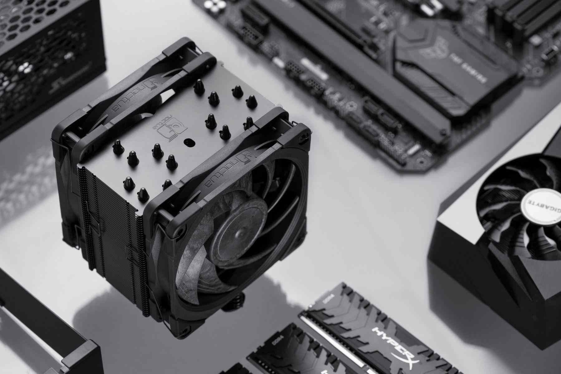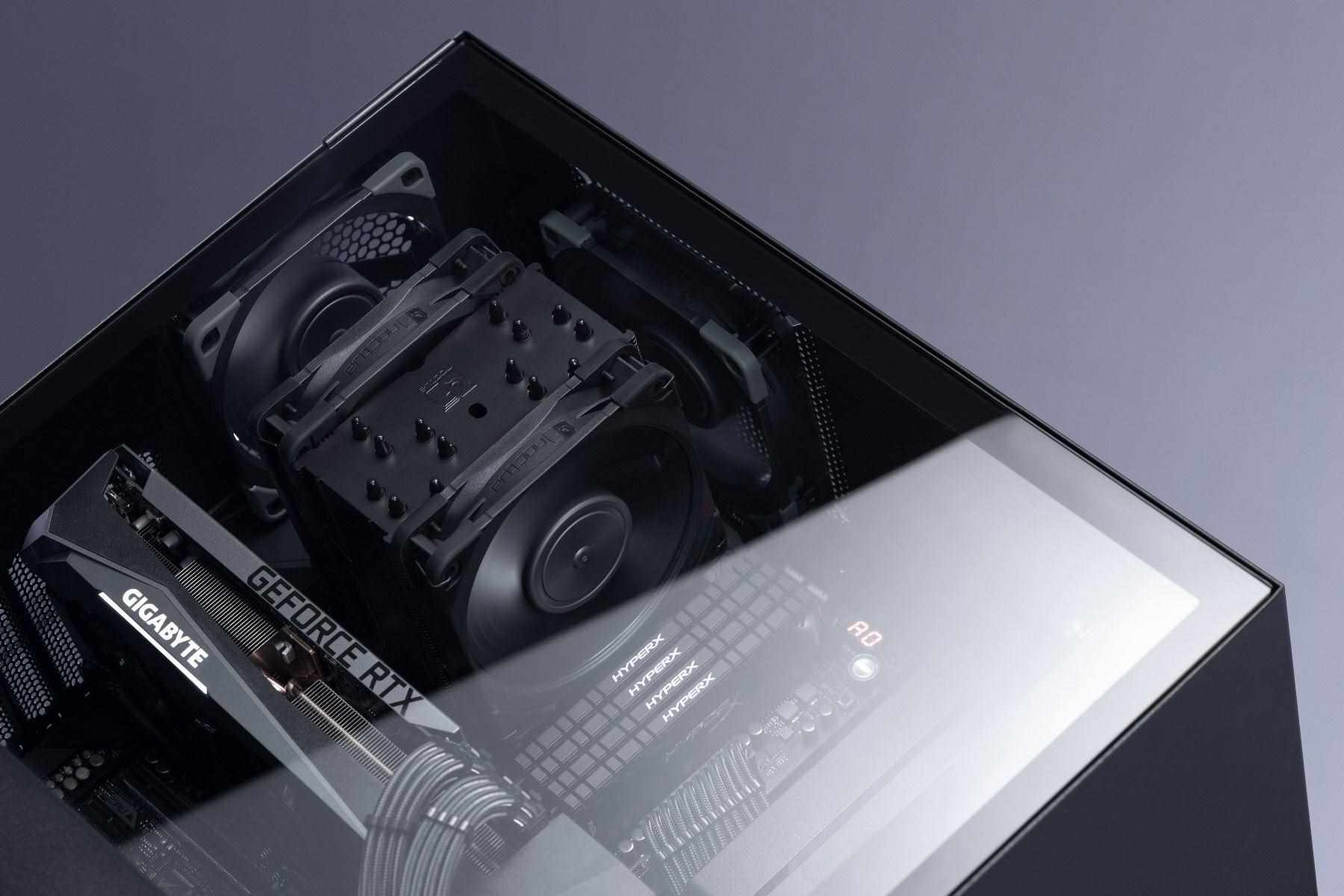 Dlouho očekávané chladiče NH-U12A v celočerném provedení jsou tady. Díky svým kompaktním rozměrům neblokuje PCI-E sloty a dva špičkové 120mm ventilátory, také v černém, zaručí tichý chod a efektivitu chlazení, která dokáže konkurovat i 140mm chladičům.