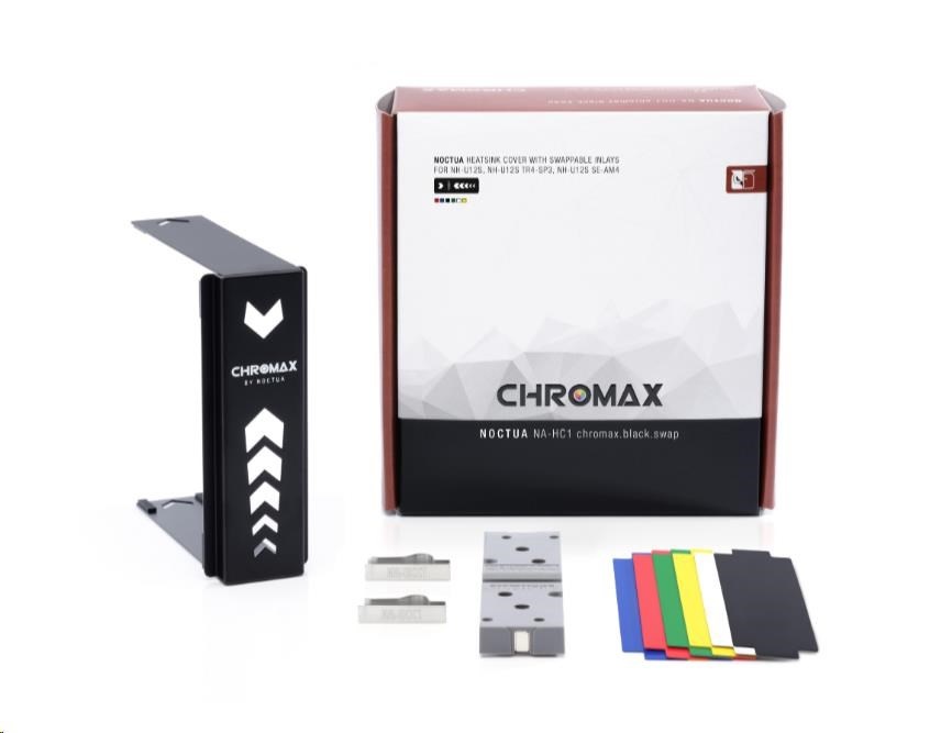 Chladičový kryt NA-HC1 chromax.black.swap je přídavné příslušenství pro oceňované chladiče CPU Noctua NH-U12S, NH-U12S TR4-SP3, NH-U12S SE-AM4 a NH-U12S DX-3647. Vyrobeno z vysoce kvalitního hliníku s černým práškovým nástřikem a včetně vyměnitelných vložek v černé, bílé, červené, modré, zelené a žluté barvě umožňuje uživatelům barevně přizpůsobit chladič tak, aby ladil s oblíbenými barevnými schématy sestav, jako je celočerná, černobílá nebo černočervená. Díky snadné a přímočaré instalaci trvá změna vzhledu vašeho chladiče NH-U12S jen pár minut a nevyžaduje ani jeho odpojení od CPU. V kombinaci s ventilátorem chromax.black.swap edice NF-F12 vám NA-HC1 dává nekonečné možnosti navrhnout si vlastní, individuální NH-U12S, která vypadá stejně skvěle, jako chladí!