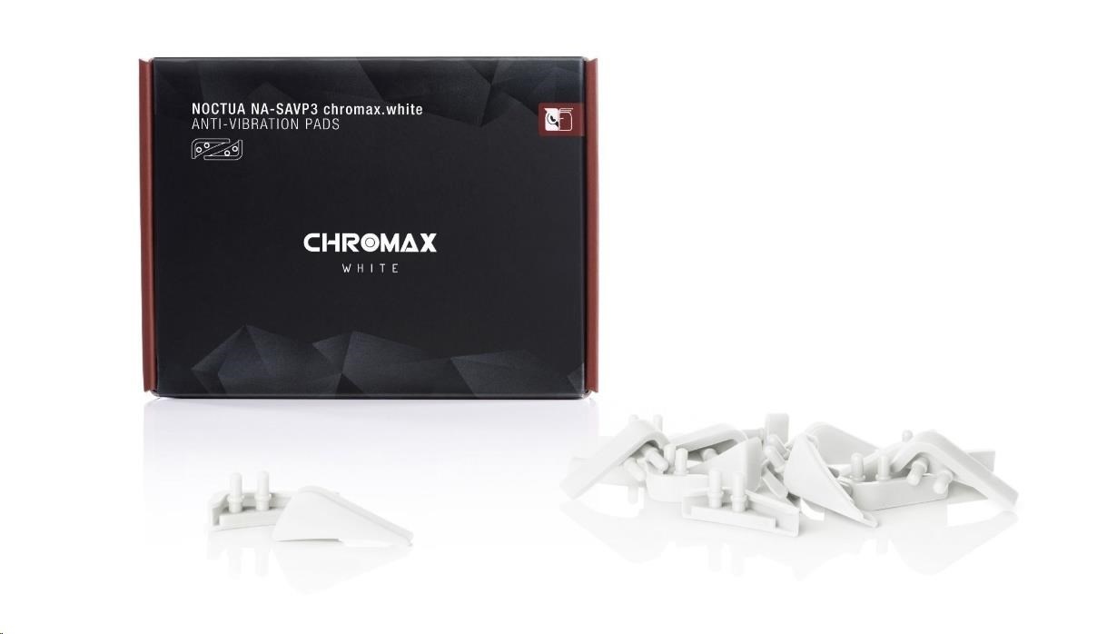 Balení Noctua NA-SAVP3 chromax.white obsahuje 16 extra jemných silikonových podložek určených pro snížení přenosu vibrací. Tyto podložky jsou určené pro zaoblené 140mm ventilátory, jako například Noctua NF-A15. Stylová bílá barva také krásně dokáže dodat lehký akcent oblíbené sérii celočerných věntilátorů a to například u NH-D15, kdy můžete díky podložkám sladit elegantní černou barvu se zbytkem stroje.