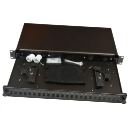 Optická vana výsuvná 1U, 24x SC simplex (24x LC duplex, 24x E2000) s kazetou pro 24 svarů, černá
