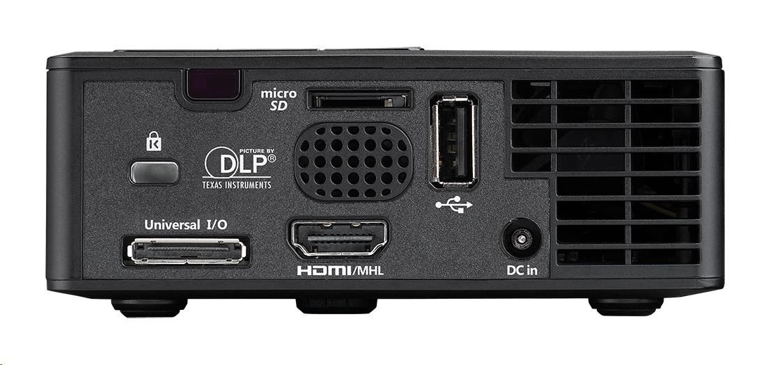 Skutečné rozlišení projektoru:WXGA (1280x800); Technologie:DLP; Kontrast (hodnota : 1):10000-20000; Svítivost (v ANSI lumenech):500-1000; Rozhraní:HDMI, VGA, USB 2.0, 3.5mm Jack, MHL; Funkce:Dálkové ovládání, Reproduktory, 3D.