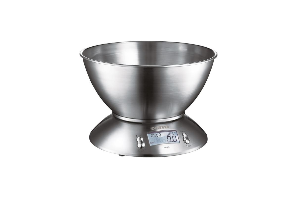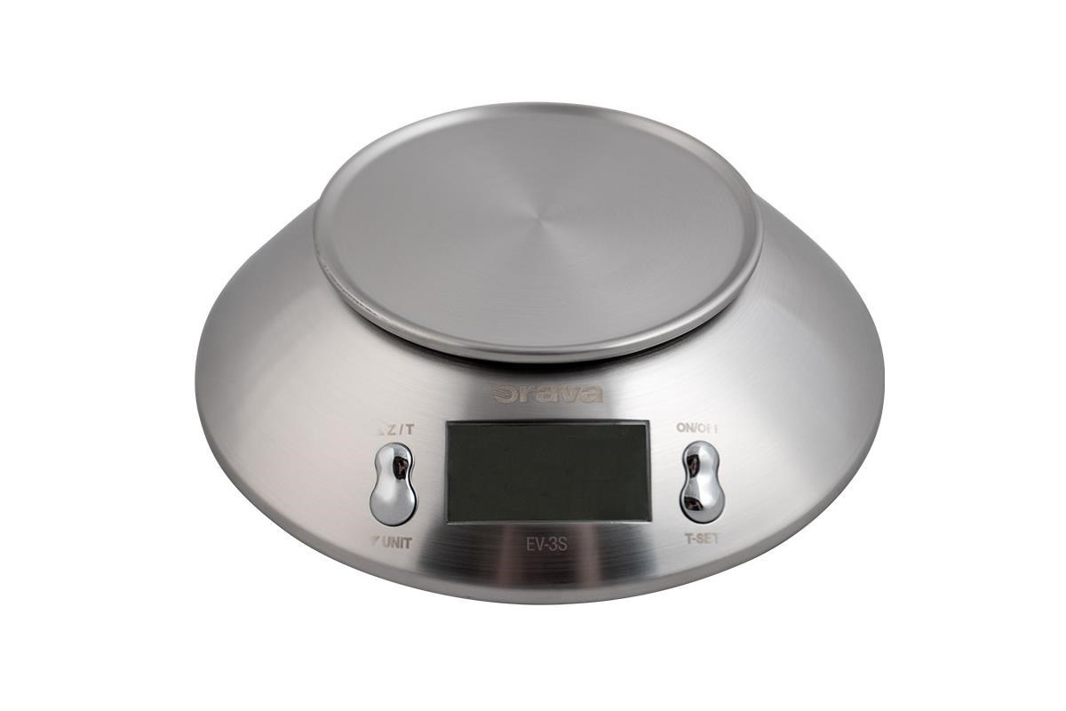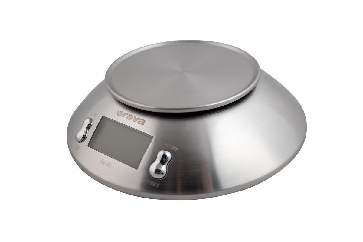 ORAVA EV-3 S digitální kuchyňská váha, LCD displej, přesnost 1 g, funkce TARE, nerez, časovač