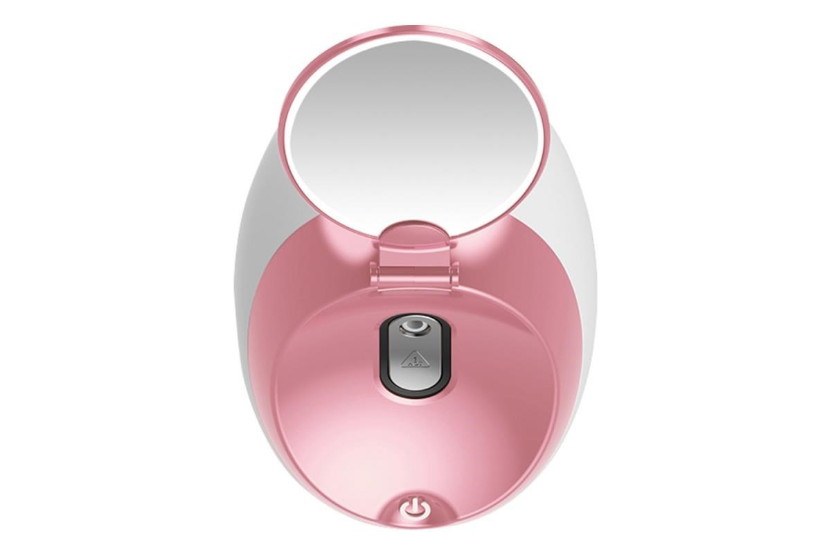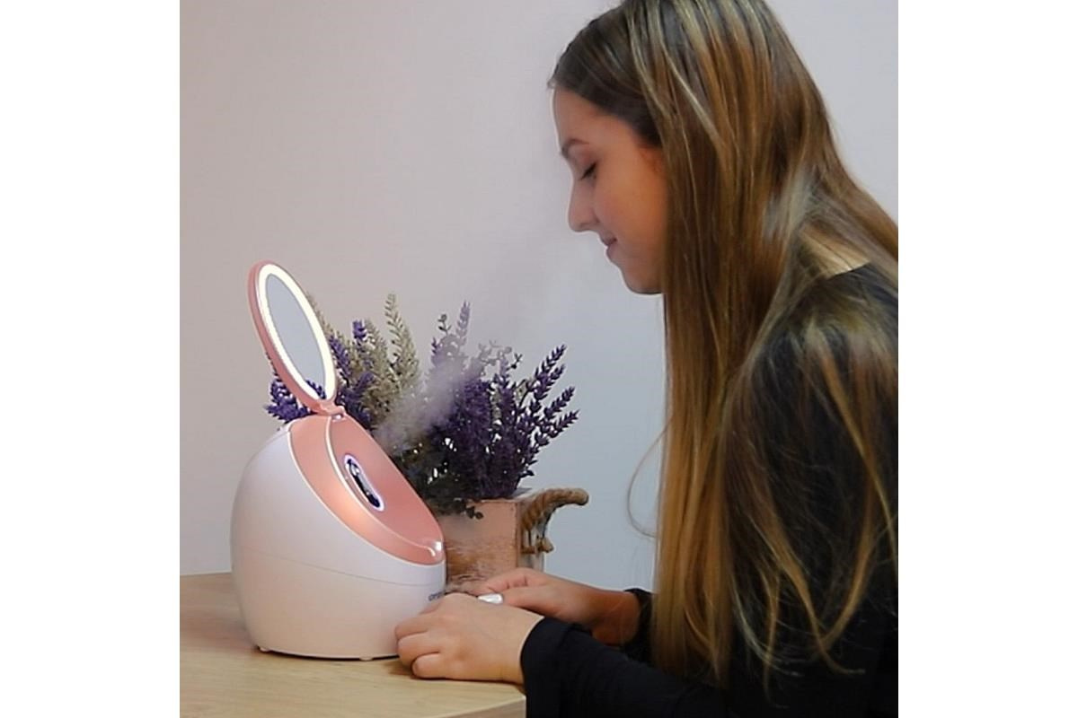 Do 80 ml nádržky naberete vodu, zapojíte ji do elektrické zásuvky, zapnete - a domácí wellness pro pleť právě začal. Sauna vytváří vodní páru o teplotě 40 °C. Pokožku hloubkově vymasíruje a hydratuje ji, otevře póry pro efektivnější čištění a připraví pleť pro přijímání živin a blahodárných esencí z výživných krémů a masek a kúr, které si po inhalaci a vyčištění pleti nanesete na obličej a dekolt.Kosmetické zrcátko