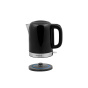 Automatická varná konvice, černá lesklá barva, Objem vody: max. 1,7 l, Napájení: 220 - 240V ~ 50/60 Hz, 1 850 - 2 200W, VDE zástrčka, Varná nádoba na odnímatelném 360 ° otočném podstavci, Topné těleso překryté deskou z ušlechtilé oceli, automatické vypnutí, Ochrana před ohřevem bez vody, ukazatel napájení, S indikátorem hladiny vody.