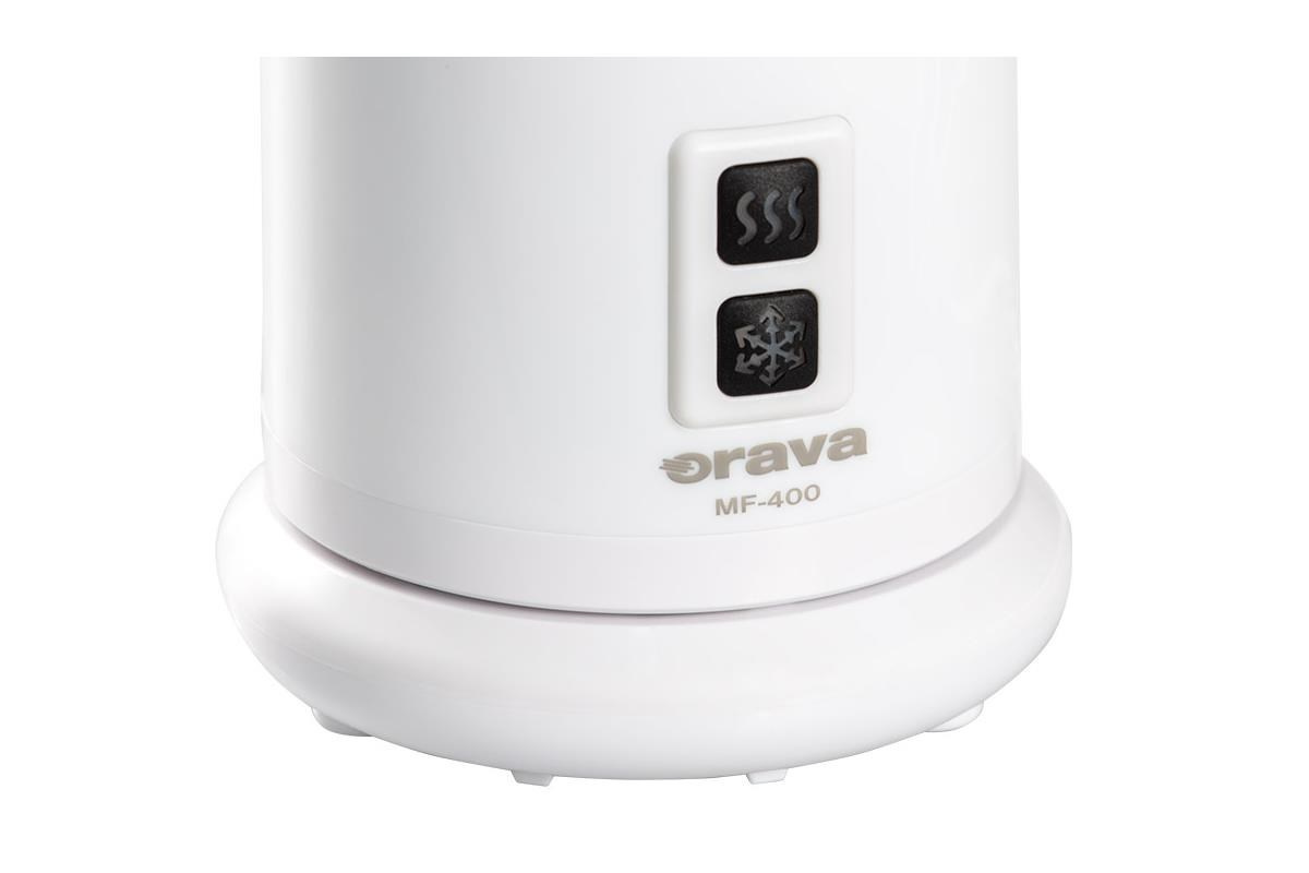 Orava MF-400 je vhodný pro přípravu caffe latte, kapučína nebo macchiata i ledové kávy. Má odnímatelný podstavec jako při varné konvici, pro ohřev. Umožňuje zpracovat až 115 ml mléka pro šlehání a až 240 ml mléka pro ohřev. Pěnič disponuje 2-funkčním přepínačem se světelnou indikací a topným dnem se zakrytou topnou spirálou..