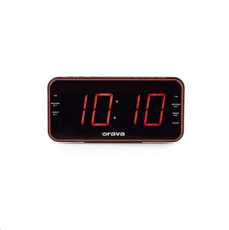 Orava radiobudík s velkým červeným LED displejem, funkce SNOOZE, SLEEP, DIMMER, nabíjení externího zařízení