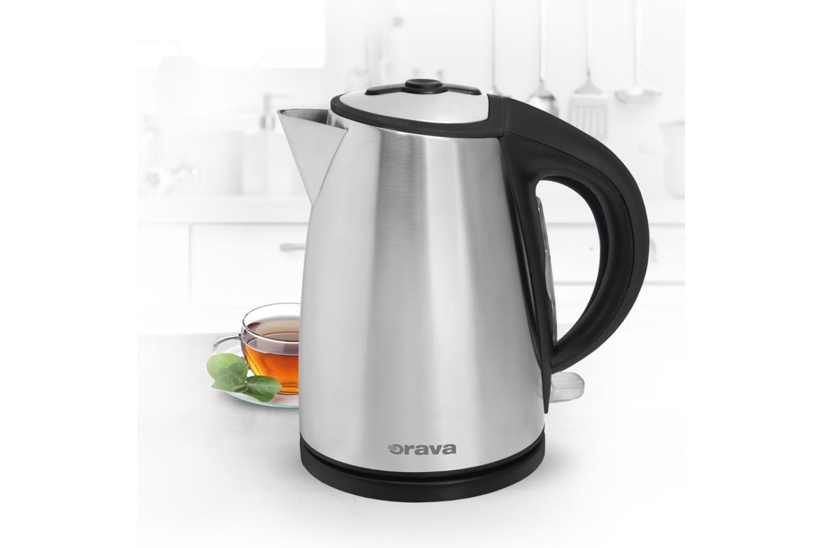 Rychlovarná konvice Orava, která zaujme především luxusní konstrukcí z nerezové oceli. Díky ní působí moderním dojmem a použití vysoce kvalitních materiálů se navíc pozitivně podepisuje i na celkové životnosti spotřebiče. Konvice je přitom schopna připravit až 1,7 litru vody, takže se hodí i do větších domácností a kanceláří. Zárukou toho, že bude vroucí voda pro oblíbený nápoj připravena během pár desítek sekund, je hodnota maximálního příkonu, která činí nadstandardních 2200 W.
