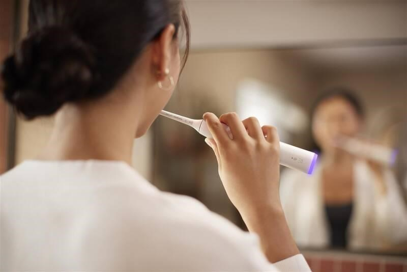 Elektrický zubní kartáček Sonicare má ve své základně světelný kroužek, který vás jemně upozorní, pokud příliš tlačíte. Jakmile se rozsvítí, jednoduše zmírněte intenzitu čištění a vaše dásně zůstanou chráněné.