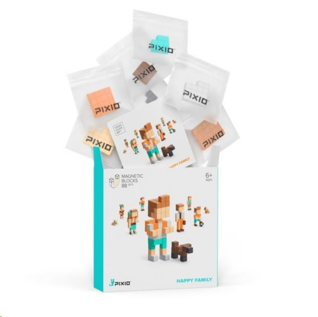 PIXIO Happy Family obsahuje 88 bloků PIXIO v 7 barvách. Umožní oživit vaše kreativní nápady a