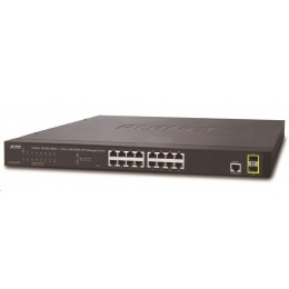 Planet GS-4210-16T2 Switch, L2/L4, 16x 1000Base-T, 2x SFP, Web/SNMPv3, VLAN, QoS, IPv6, fanless