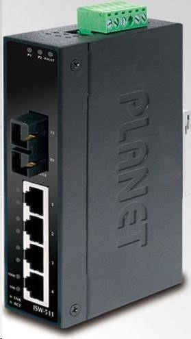 Planet ISW-511, 4x 10/100Base-TX+ 1x 100FX 2km, MM, DIN, IP30