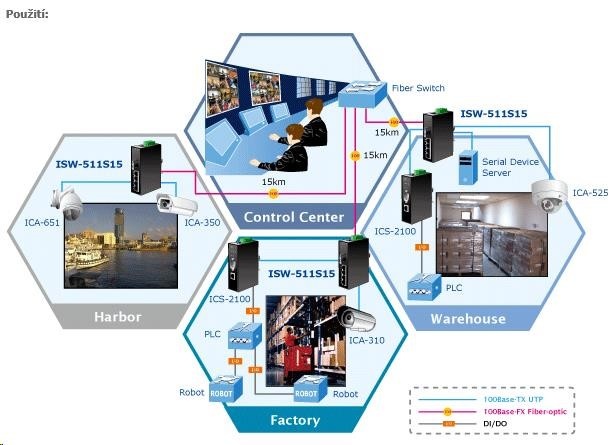 Planet ISW-511, 4x 10/100Base-TX+ 1x 100FX 2km, MM, DIN, IP30 Přepínače pro průmyslový Ethernet jsou určeny do náročných provozních podmínek s velkým rozsahem pracovních teplot, nejistým napájením a častými otřesy. Přepínače řady ISW se snadno instalují na standardní DIN lištu nebo přímo na zeď a umožňují nasazení dobře známé Ethernetové technologie i v průmyslovém prostředí. Stejně tak jsou vhodné pro instalace do venkovně umístěných skříní s velkým kolísáním pracovních teplot (typicky bezdrátové a MAN ISP aplikace). Vlastnosti: - 4 porty 100Base-TX, Switching, Full Duplex (100/200 Mbps), Auto-Negotiation (10/100 Mbps), automatická detekce přímý/křížený kabel na každém portu - 1 port 100Base-FX, full duplex, SC konektory, multimodemode, pro 50/125um a 62,5/125um vlákno, dosah 2km, vlnová délka 1300nm, zdvih min. 15,5dB (vysílací výkon max. -14dBm, min. -19dBm, přijímací citlivost -34,5dBm) - 1M buffer, propustnost sběrnice 1Gbps - pole LED indikátorů pro diagnostiku provozu - instalace na DIN lištu, montážní díl součástí - instalace na zeď, montážní díl součástí - krytí IP30, skříň celohliníková - napájení: 12-48V DC redundantní, připojení možné ze dvou různých zdrojů (nejsou součástí balení) - ochrana proti přepólování, připojení napájení na svorkovnici, umístění na spodním panelu (nepřekáží při montáži na zeď) - QoS prioritizace provozu dle portu, ToS, 802.1p - zařízení je odolné proti pádu (IEC-60068-2-32) z výšky 75cm na všechny dopadové části - zařízení je odolné proti vibracím (IEC-60068-2-6) 10-500-10Hz, 4x g, 0,5oct/min - zařízení je odolné proti přetížení krátkodobému zrychlení 50g, dlouhodobému 4g, (IEC-60068-2-27) - EMI/EMS, elektromagnetická kompatibilita a slučitelnost dle CE EN-6100-4-2,3,4,5,6 - elektrická bezpečnost dle CE EN-60950 - pracovní teplota -10 až 60 st. C, vlhkost do 95% - skladovací teplota -40 až 85 st. C - příkon 9,1W - rozměry 135 x 97 x 32 mm.