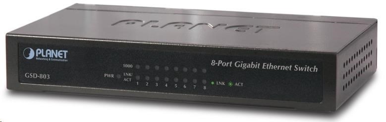 Planet switch GSD-803 10/100/1000 (8X1000BASE-T), EUP, 802.3AZ, kov