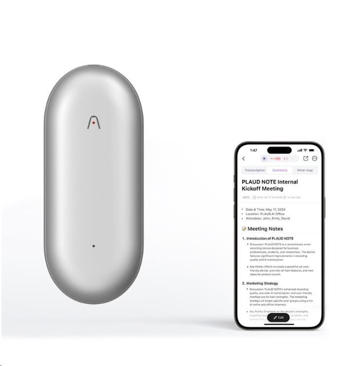 Plaud Note Pin využívá pokročilé technologie GPT-4 a Claude 3.5, které výrazně zvyšují kvalitu záznamu a transkripce. Díky těmto inteligentním systémům můžete snadno převádět své záznamy na text, vytvářet shrnutí, a dokonce generovat myšlenkové mapy. Tato inovativní funkčnost dává uživatelům možnost efektivně organizovat a spravovat informace s maximální přesností a pohodlím.