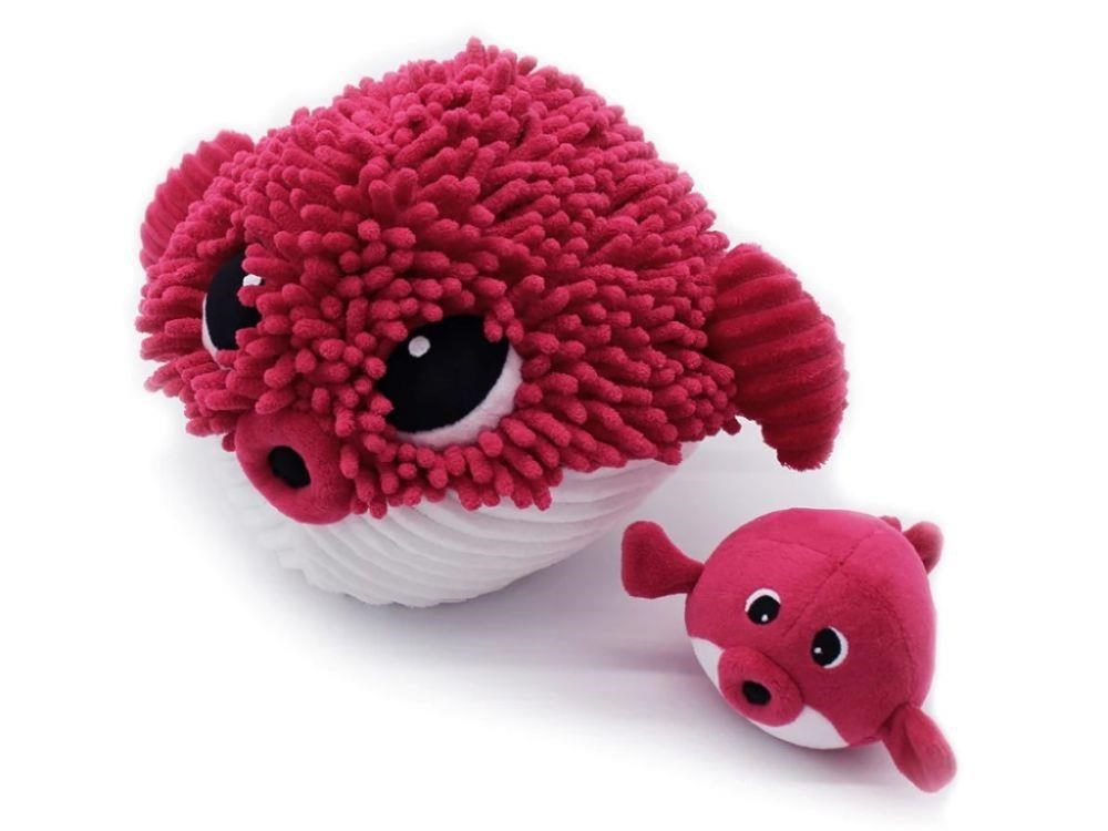 Plyšová ryba Blowfish - máma s miminkem, červená