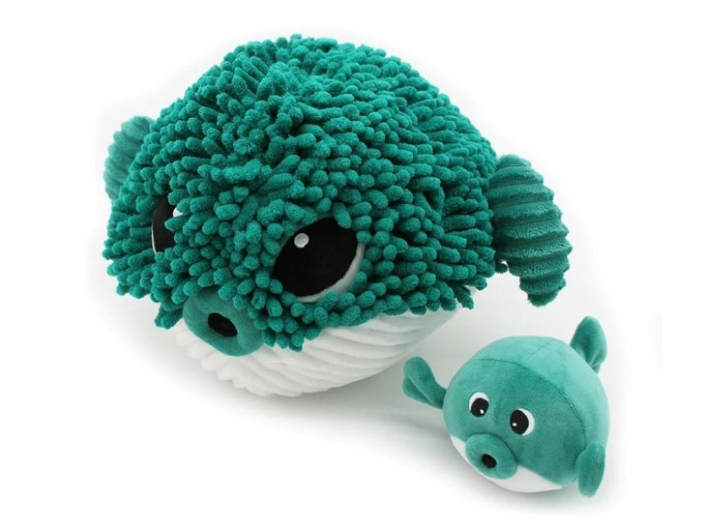 Plyšová ryba Blowfish - máma s miminkem, Zelená