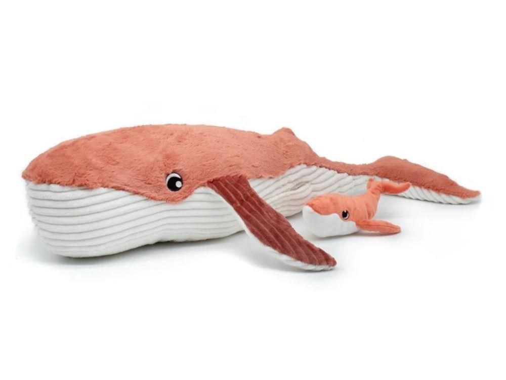 Velký plyšák 2v1, velrybí maminka s miminkem, je originální plyšovou hračkou, která potěší holčičky i kluky. Roztomilý a úžasně heboučký plyšák je vhodný pro děti již od narození, ale jistě si jej zamilují i děti větší. S velkým plyšákem mohou děti spát, hrát si s ním, mazlit se a použít jej jako neobyčejně příjemný a měkký polštář. Plyšovou velrybí mámu s miminkem nabízíme ve více barevných variantách..