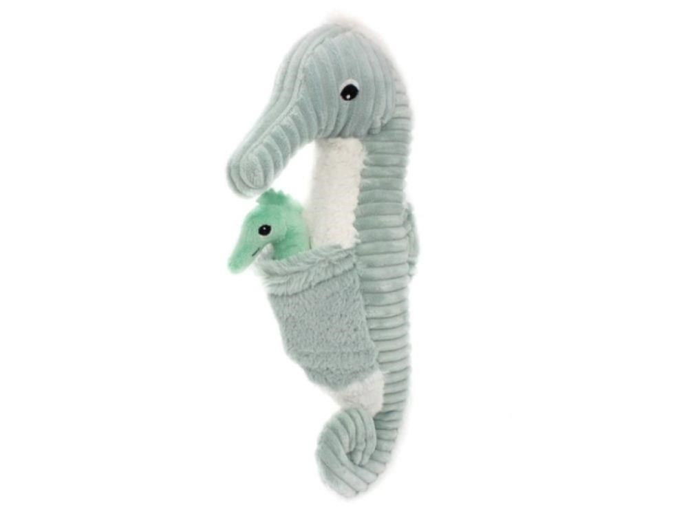 Originální plyšová hračka v podobě mořského koníka s kapsičkou na bříšku, ve které je schované jeho miminko, je krásnou hračkou pro holčičky i kluky k jakékoliv příležitosti. Plyšové zvířátko ve více barevných provedeních je vhodné pro děti již od narození. Heboučký plyšový mořský koník je ideální hračkou do postýlky nebo postele, k hraní i mazlení. Plyšák se stane součástí dětských her a skvělým společníkem na cesty..