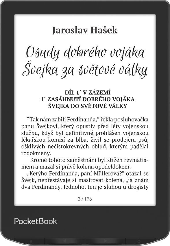PocketBook Verse je kompaktní zařízení, které váží pouhých 182 g a je dokonalou kombinací mechanických ovládacích tlačítek a dotykové obrazovky