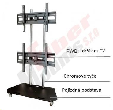 Technické údaje: •maximální zatížení stojanu: 140kg •maximální hmotnost 1 televizoru: 60kg •výška stojanu 210cm •nastavitelná výška TV •na TV a monitory 22" - 60" dle zvoleného držáku TV •pojízdný, možnost zajištění proti pojezdu •barva: podstavec černý, tyče chrom •profesionální výrobek - nejvyšší kvalita •možnost nastavení sklonu obou TV +/-18 st. •vedení kabeláže vnitřkem stojanu •nosnost podstavce 30kg - možnost umístění PC, noteboaku, DVD atd. •rozměry podstavce: 1170x500mm (ŠxH) •atest TUV •záruka 10 let.