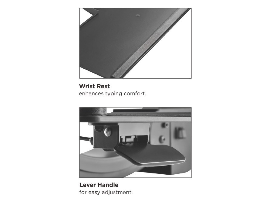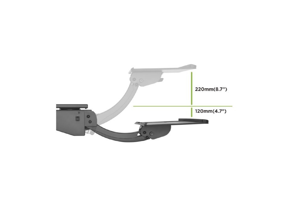 Polička na klávesnici Fiber Mounts M7C95 Plně polohovatelná přídavná polička na klávesnici, rozměry 670x255mm Profesionální plně polohovatelná stolní přídavná polička na klávesnici a myš, která poskytuje skutečné ergonomické řešení pro Vaši nejpohodlnější práci. Nastavení ve všech polohách s aretací. Pokud požadujete to nejlepší a záleží Vám na zdravém pracovním stylu, tuto poličku si zamilujete. Profesionální stolní polička na klávesnici, plně polohovatelná: výsuvná, otočná, sklopná, výškové nastavení 34cm, aretace polohy - Fiber Mounts M7C95 Technické údaje: nosnost 2kg výsuvná 470mm výškové polohování 340mm otáčení +/- 180° rozsah naklápění +15 / -13° rozměry police 670 x 255 snadné schování police s klávesnicí pod stolovou deskou aretace polohy nejvyšší kvalita snadná instalace a ovladatelnost zvýšení komfortu a pracovního výkonu barevné provedení černé záruka 3 roky Precizní velmi snadné polohování poličky na klávesnici Fiber Mounts M7C95 Ušetřete na svém stole spoustu místa - dejte klávesnici a myš na tuto výsuvnou polici a kdykoliv ji můžete uschovat pod slolovou deskou. Police je plně nastavitelná a poskytuje při práci vysoký komfort..