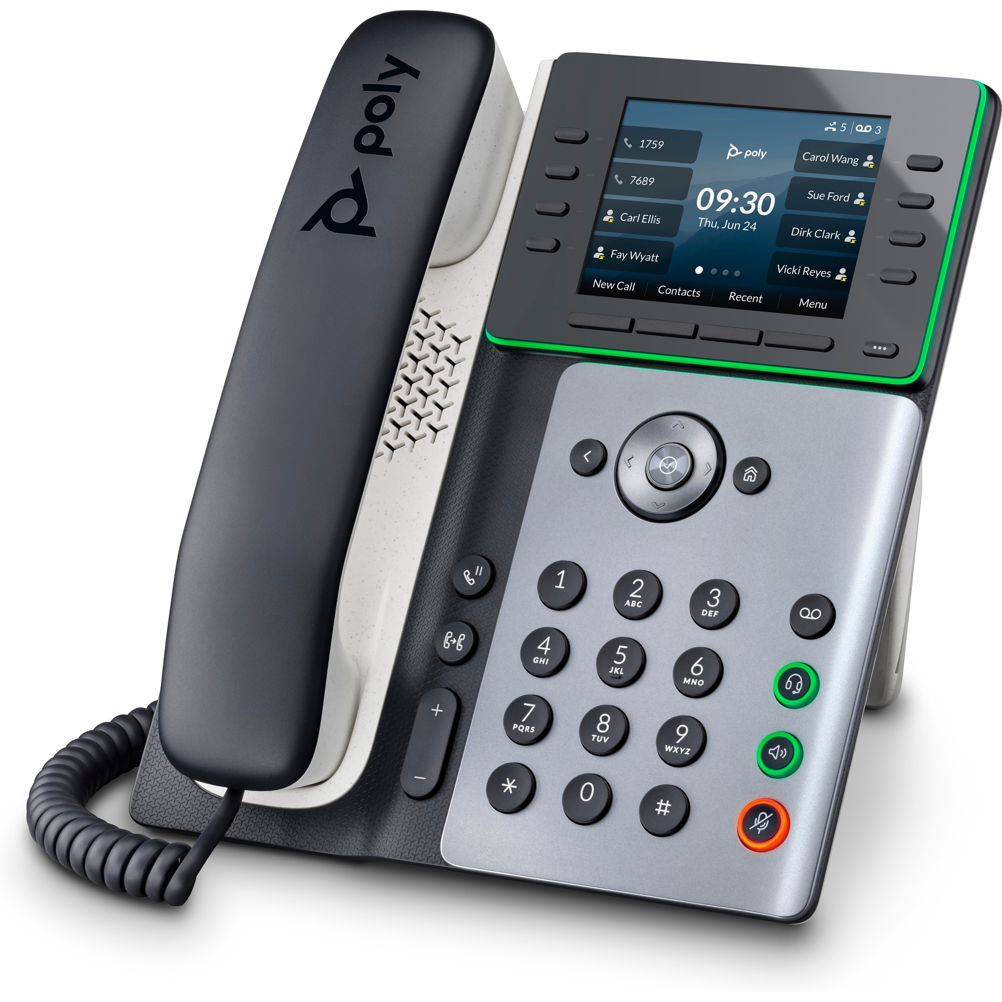 | Audio | Poly HD Voice; Technologie Poly Acoustic Clarity zajišťuje plně duplexní hovory a potlačuje akustickou ozvěnu i okolní šum; Technologie Poly Acoustic Fence potlačuje okolní hluk při použití sluchátka nebo kabelové náhlavní soupravy; Technologie Poly NoiseBlockAI odstraňuje většinu okolního hluku při používání konferenčního reproduktoru; Aplikace Poly Computer Audio Connector nainstalovaná v počítači (pouze Windows) umožňuje vybrat telefon pro zvukový vstup a výstup počítače a použít s počítačovými aplikacemi sluchátka, volitelné náhlavní soupravy a handsfree hlasitého odposlechu; Širokopásmový zvuk TIA-920, v souladu s typem 1 (plně duplexní IEEE 1329); Individuální nastavení hlasitosti s vizuální zpětnou vazbou pro každou zvukovou cestu; Detekce hlasové aktivity; Komfortní tvorba hluku; Generování tónů DTMF (RFC 2833 a v pásmu); Přenos zvukových paketů s nízkým zpožděním; Adaptivní paměti pro vyrovnání zpoždění |