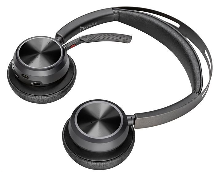 Poly Voyager Focus 2 MS Teams bezdrátová náhlavní souprava, USB-A/C adaptér, stereo