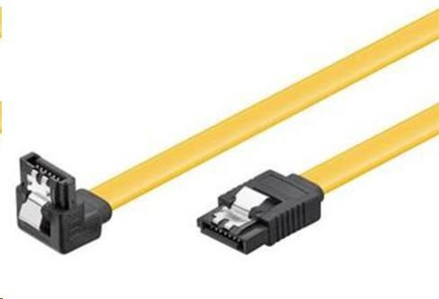 SATA 3.0 datový kabel s kovovou západkou proti vytažení na jedné straně a jedním zahnutým konektorem