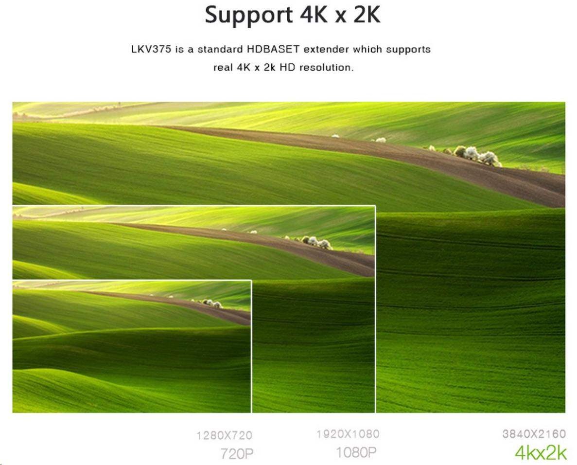 Zařízení umožňuje po síťovém kabelu přenést HDMI 4K x 2K nebo FULL HD 1080p signál až na 70m.