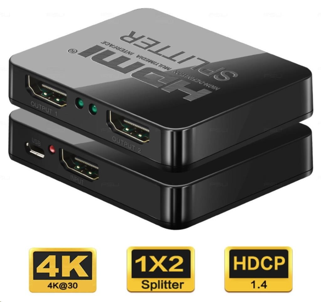 HDMI Video Splitter 1 => 2 Porty, 3D, 4K x 2K, FULL HD s napájením z USB