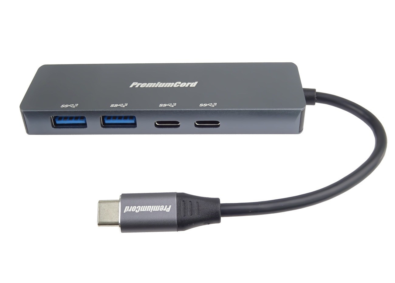 PREMIUMCORD Hub USB-C na 2x USB 3.2 Typ-C +2x USB 3.2, 5G SuperSpeed, Aluminum