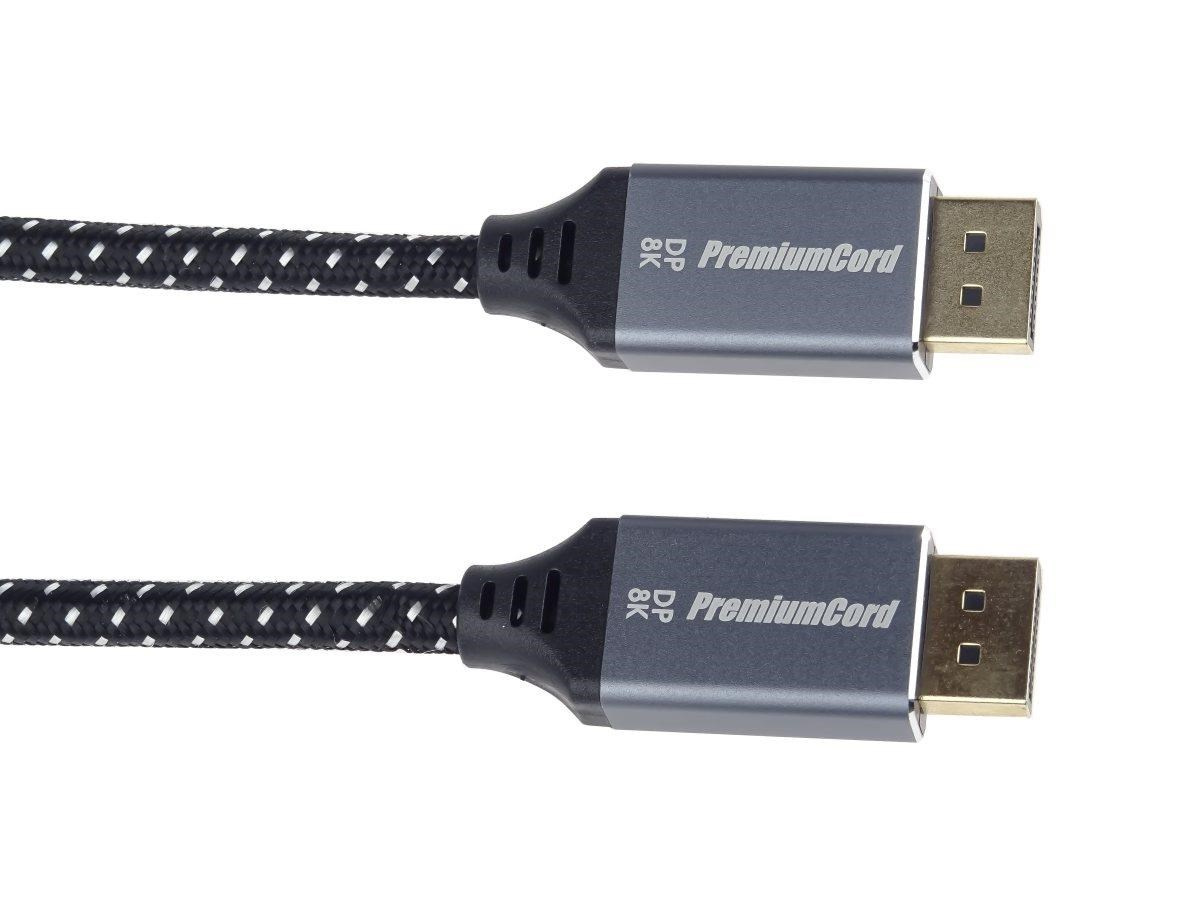 PremiumCord DisplayPort 1.4 přípojný kabel M/M pro rozlišení 8K, kovové krytky a zlacené konektory, 1,5m