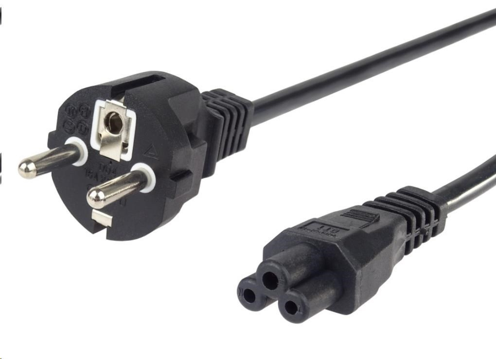 Napájecí kabel v černém provedení pro notebook. Třížilový kabel je zakončený zástrčkou typu "Mickey mouse" IEC 320 C5. Parametry a specifikace: - První konektor: CEE 7/7 rovná vidlice 230V - Druhý konektor: IEC 320 C5 zásuvka - Průřez vodiče: 3x0,75mm2 - Proudové zatížení: max 2,5A - Napětí max.: 250V - Barevné provedení: černé - Rovný konec - Délka kabelu: 2m - Počet kusů v kartonu: 50 ks.