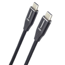 PREMIUMCORD Kabel USB-C M/M, 240W 480Mbps černý bavlněný oplet, 2m