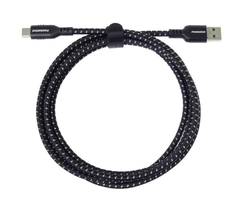 PremiumCord kabel USB-C - USB 3.0 A (USB 3.2 generation 1, 3A, 5Gbit/s) 0,5m bavlněný oplet a kovové hliníkové konektory