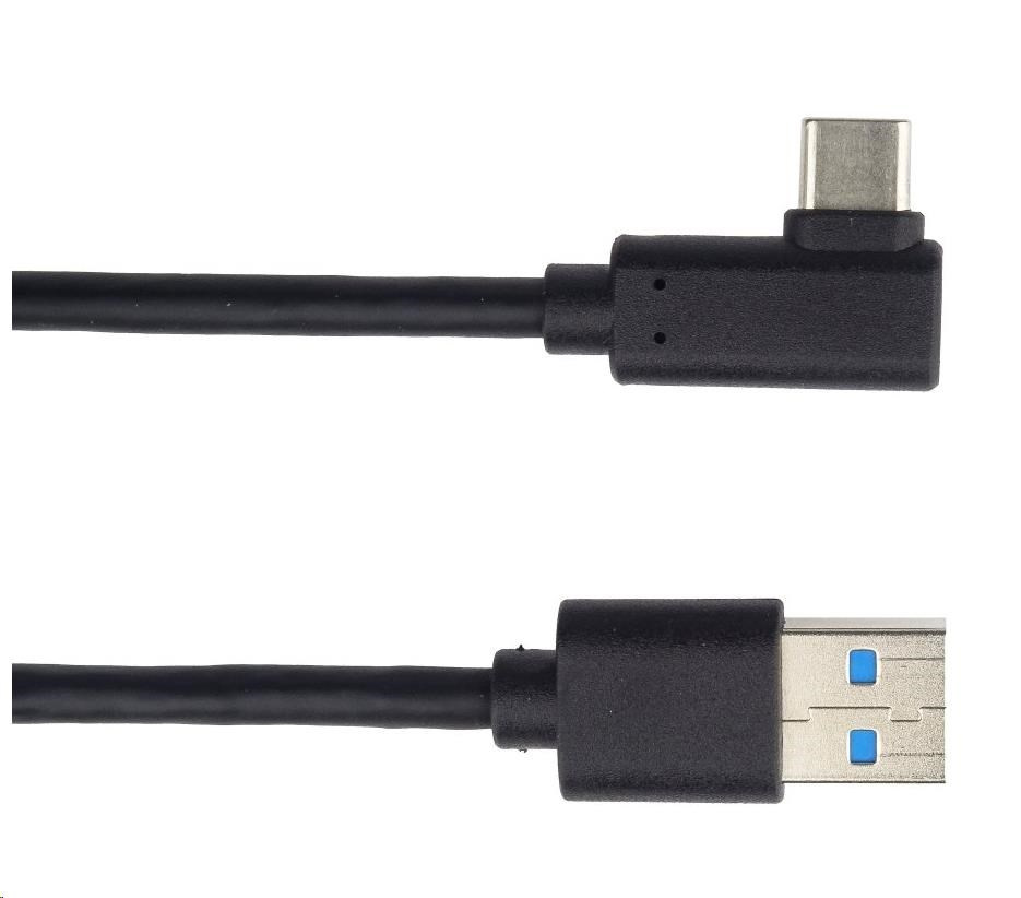 PREMIUMCORD Kabel USB typ C/M zahnutý konektor 90° - USB 3.0 A/M, 2m